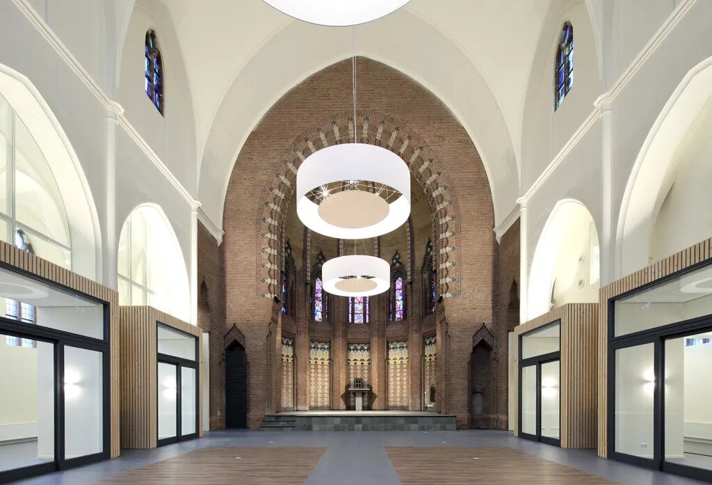 De kerk is in de jaren ’30 vergroot door dwars op het originele schip een nieuw schip te bouwen. De kerk heeft daardoor twee belangrijke assen die in het nieuwe ontwerp zichtbaar zijn gebleven. Het grote middenschip is vrijgehouden en de nieuwe functies zijn ondergebracht in de zijbeuken.