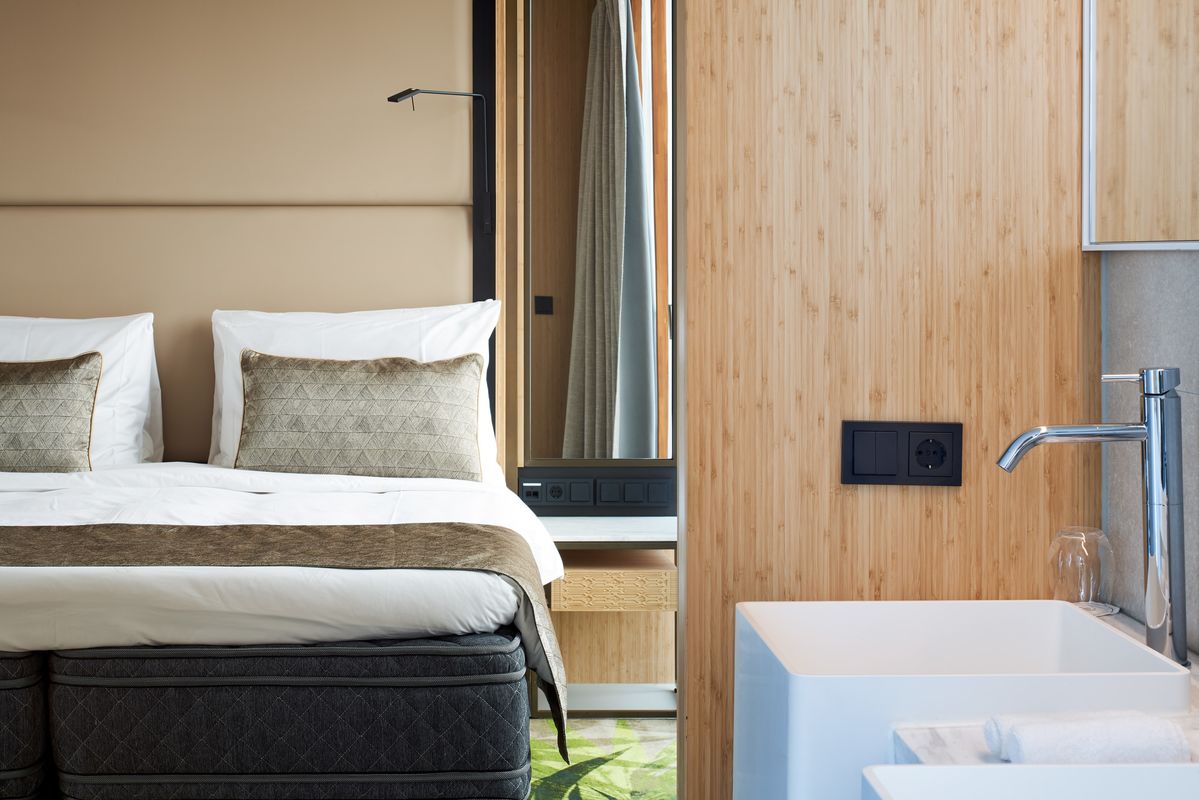 Het is een heel bijzonder project, het in de zomer van 2018 geopende Hotel Jakarta op het Java-eiland in Amsterdam. Op een historische plek verrees rond een tropische binnentuin een hotel dat van alle gemakken is voorzien. Duurzaamheid speelt een sleutelrol in het ontwerp van het pand, gebouwd in hout. De duurzame en hoogwaardige materialen van Gira passen helemaal in dat plaatje.