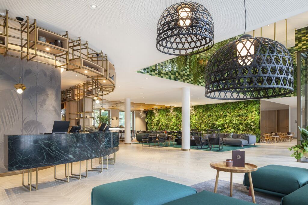 Hyatt Regency Amsterdamrecht te doen aan de drie richtlijnen waar ze voor staan; groen, duurzaamheid en welzijn. Zowel aan de binnen- als buitenkant van het pand heeft het hotel gekozen om dit met een groene gevel zichtbaar te maken. Ook is er op het dak een