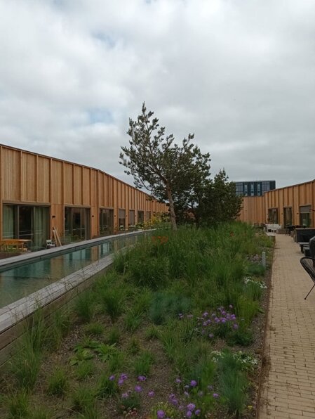 Met meer dan 3000 planten, variërend van siergrassen en vaste planten tot zelfs bomen, vormt het dak een uitnodigende groene ruimte waar bewoners tot rust kunnen komen. De groendakopbouw draagt niet alleen bij aan een gezonde en fijne leefomgeving, maar bevordert zo ook de sociale interactie onder de bewoners.