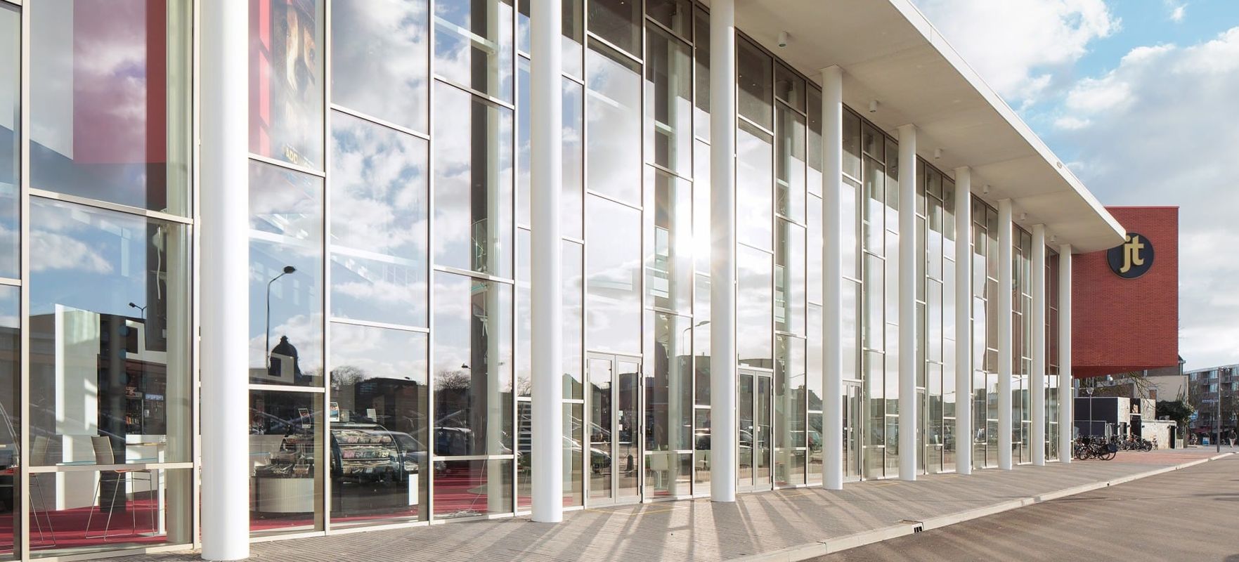 In samenwerking met hoofdaannemer Van Wijnen heeft Intal voor de JT Bioscoop de aluminium kozijnen en vliesgevels geproduceerd, geleverd en gemonteerd. Met goed resultaat want de bioscoop heeft daardoor een moderne en open uitstraling gekregen.