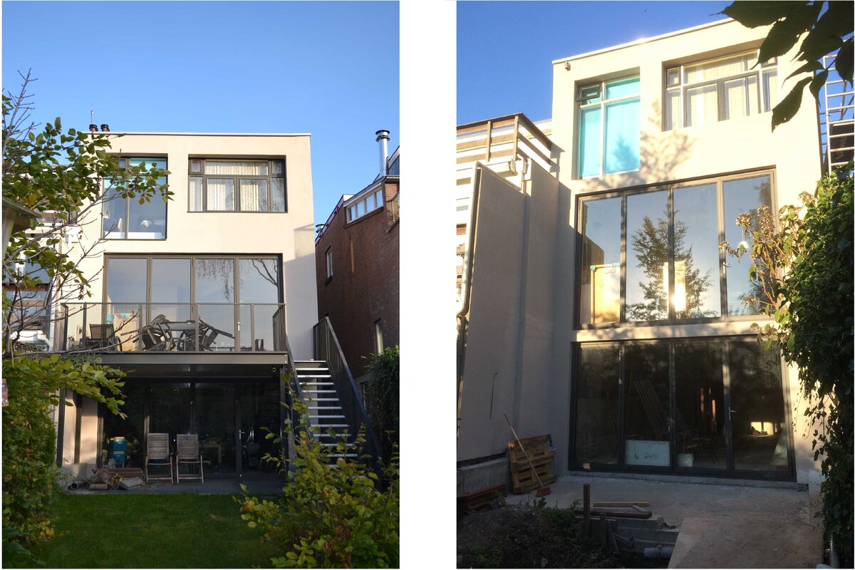 Ter verbetering van het binnenklimaat en energiereductie is op zij- en achtergevel een isolatiepakket en stucwerk aangebracht, zijn kozijnen vervangen door aluminium vouwpuien, en is een kelder gebouwd in het souterrain ten behoeve van praktijkruimten. Daarmee is een verdieping toegevoegd aan de woning, een groot terras aan de woonkamer en veel woongenot. Een eigentijdse aanpak met resultaat.