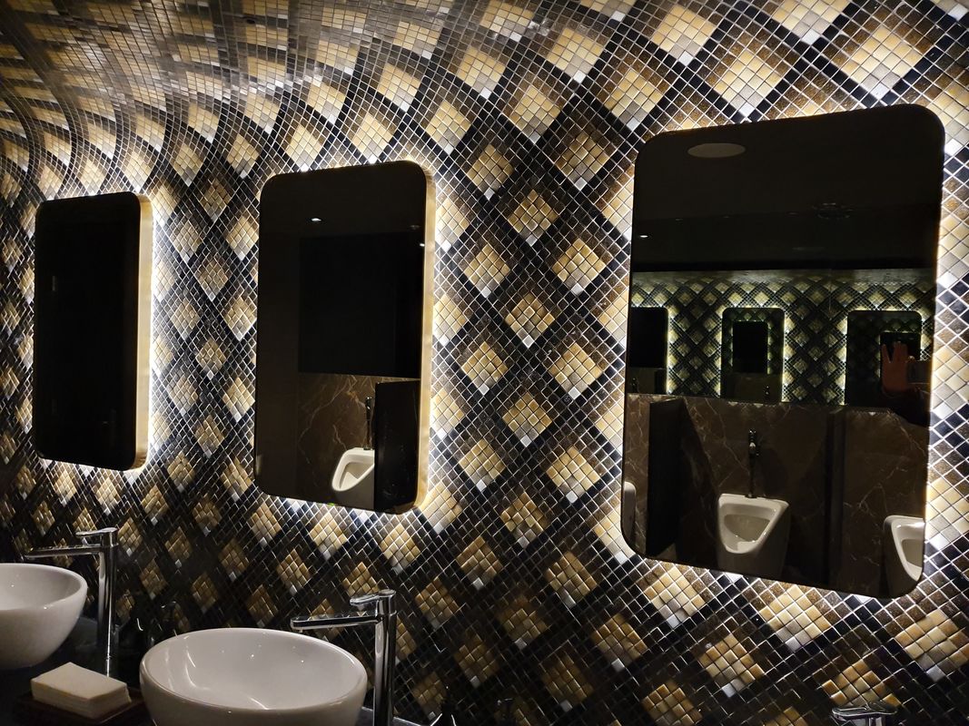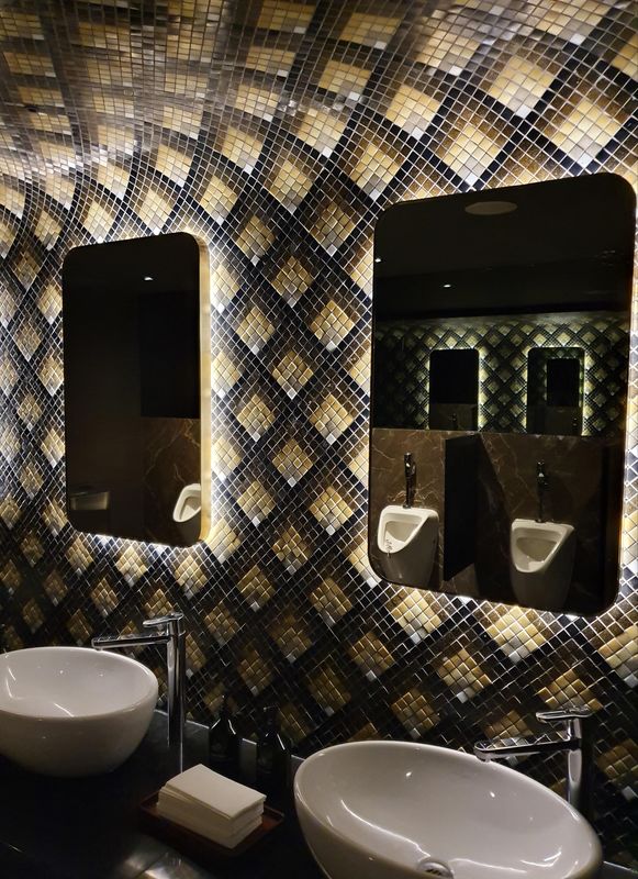 In samenwerking met designstudio Matter of Space hebben wij deze prachtige wand van glasmozaïek voor hotel Park Centraal in Amsterdam ontworpen. Deze mozaïek is afkomstig uit onze Amsterdam-collectie, waarvan we verschillende kleuren hebben gebruikt om een maatwerkpatroon te maken. Deze glasmozaïek is zeer geschikt voor het betegelen van rondingen, zoals boven de spiegels het geval is. Dit prachtige maatwerkpatroon komt daardoor nog beter tot zijn recht. Lees hier meer over het project.