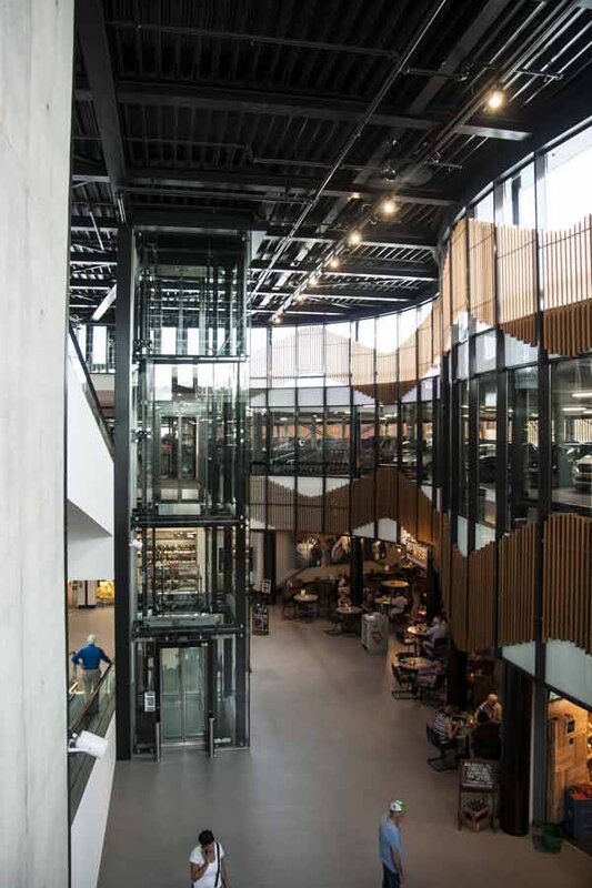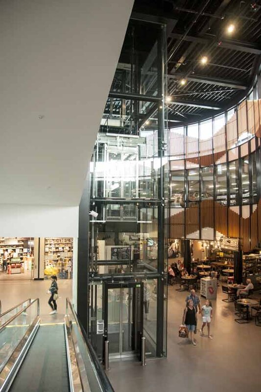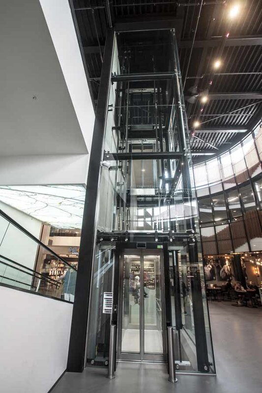 Van den Beemd B.V. heeft in opdracht van Smeets Bouw in het moderne Makado winkelcentrum een stalen liftschacht op locatie voorzien van glas op RVS rotules. De liftschacht heeft twee stopplaatsen. Het bijzondere aan de stalen liftschacht is dat de profielen zwart en rond zijn. De speciale profielen in combinatie met de glazen panorama liftschacht geeft een bijzonder elegante en moderne uitstraling in het cirkelvormige winkelcentrumcomplex. Voor dit project werd de stalen schacht met ronde profielen ondergebracht bij Smeets Bouw, omdat de schacht onderdeel is van de draagconstructie.