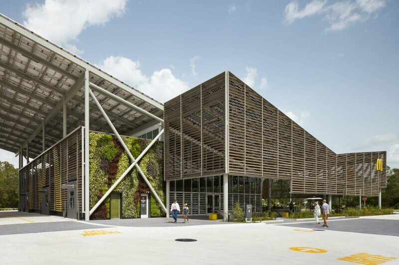 Met dit pilot-restaurant wil McDonald’s het allereerste energie-neutrale fastfoodrestaurant ter wereld zijn. Om met het restaurant bij te dragen aan een schonere lucht, verhoging van biodiversiteit én verlaging van de omgevingstemperatuur heeft Ross Barney Architects ervoor gekozen om bijna 185 m2 aan groene gevels van Sempergreen te laten installeren.
