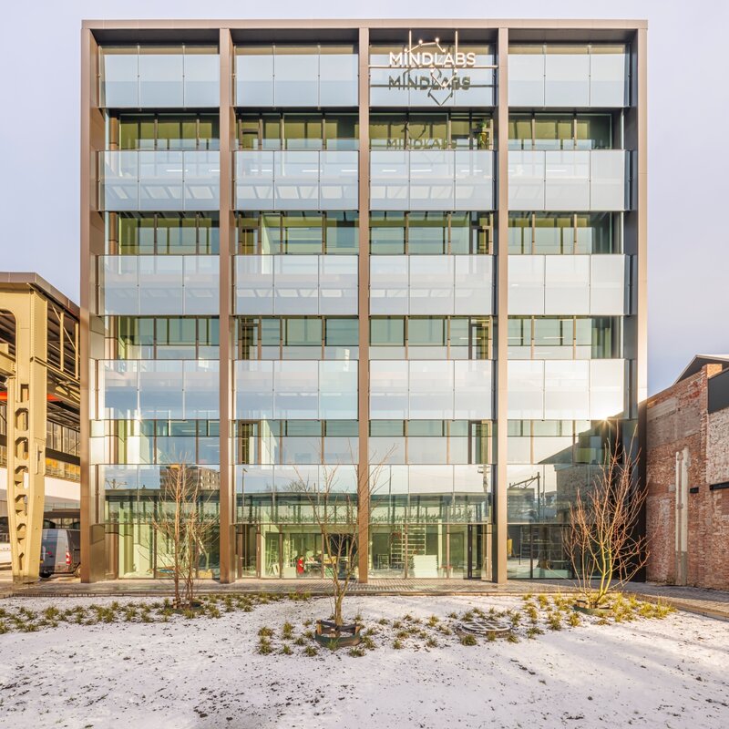De ligging van MindLabs ten opzicht van het spoor -waar incidenteel gevaarlijke stoffen over worden vervoerd- zorgde bij Ector Hoogstad voor een focus op een explosieveilige geveloplossing. ‘Binnen een zogeheten plasbrandzone is het noodzakelijk je tegen eventuele calamiteiten te wapenen. Reden genoeg voor het team van Hoogstad om Schüco al in de fase van het Voorlopig Ontwerp aan tafel te vragen,’ vertelt Schüco projectmanager Maurice van Dort. ‘Bij een dergelijk ontwerp is het van belang om van het ergste scenario uit te gaan, zodat je je tegen elk incident kunt wapenen. Een dergelijk complexe oplossing is voor ons team geweldig om te ontwerpen, te maken en toe te passen.’