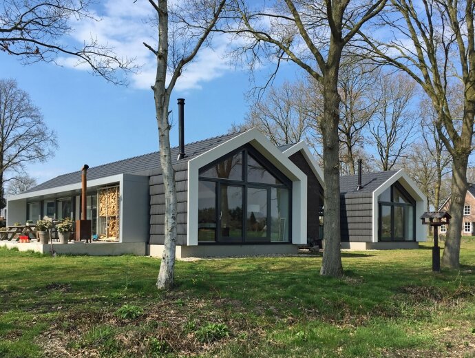 Op het terrein van de voormalige camping aan de rand van het Drentse dorp Gasselte staat een woning waarin 2 generaties gezamenlijk wonen.