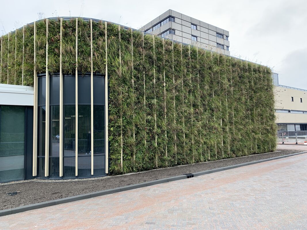 De SemperGreenwall Outdoor beslaat een oppervlakte van bijna 400 m2 en is rondom het gebouw aangebracht. De SemperGreenwall is een modulair gevelsysteem dat bestaat uit Flexipanels. De voorbegroeide panels zijn zo ontworpen dat ze volledig vrij naar ontwerp inzetbaar zijn. De beplanting van de groene gevel bestaat uit een zorgvuldig geselecteerde outdoor plantenmix. De SemperGreenwall is voorzien van een web-based Plant Care System, dat bestaat uit een volledig automatisch gestuurd irrigatiesysteem dat ervoor zorgt dat de beplanting op een gedoseerde wijze van de benodigde water en voedingsstoffen wordt voorzien. Het Plant Care System is ook uitgerust met een vorstbeveiliging dat ervoor zorgt dat de beplanting tijdens koude wintermaanden beschermd wordt tegen kans op vorstschade.