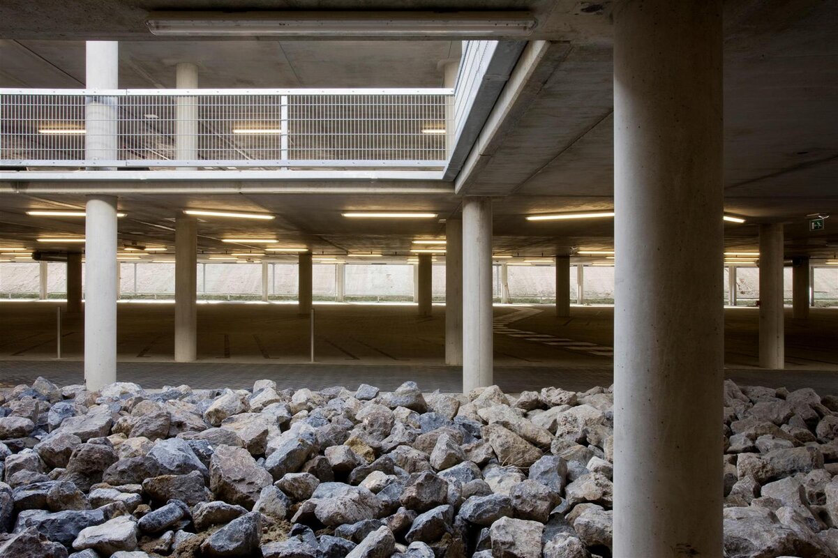 Middels een slimme landschappelijke insnijding en het toepassen van een centrale vide konden we een natuurlijk geventileerde ondergrondse parkeergarage maken. Hierdoor was er geen ventilatie-installatie nodig en kon er binnen het budget en binnen de stedenbouwkundige randvoorwaarden worden gebouwd.