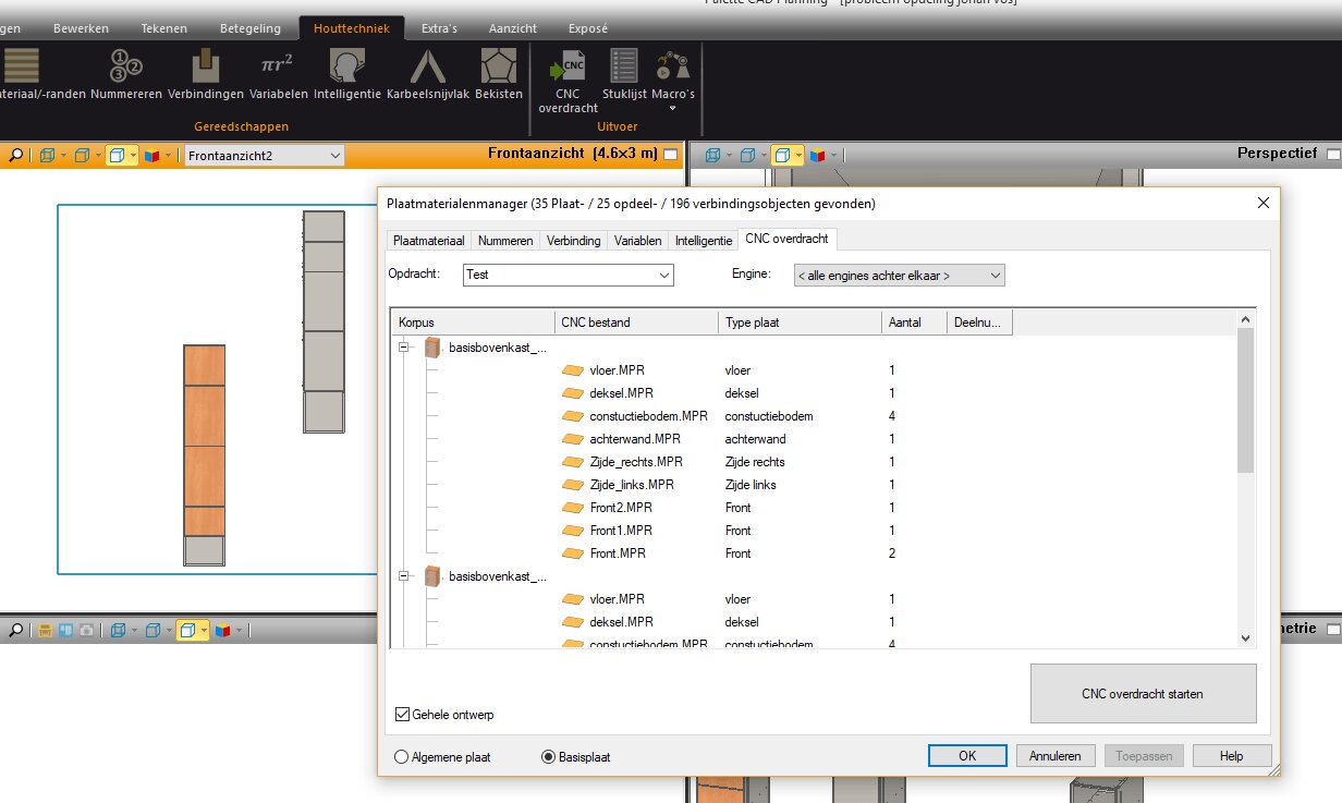 Terwijl u nog ontwerpen maakt op de computer, creëert PaletteCAD alvast de complete stuklijst zoals u deze eruit wilt laten zien. Afmetingen, aantallen, materialen, afbeeldingen en werkplaatsteksten zijn allemaal mogelijk om in uw stuklijsten te zetten. Deze stuklijsten kunt u als Excel-bestand uitprinten of in een ander softwareprogramma zoals een plaatoptimalisatie importeren. Zo bestelt u geen stuk te veel, of nog erger, te weinig. Dat bespaart u tijd, stress en geld.