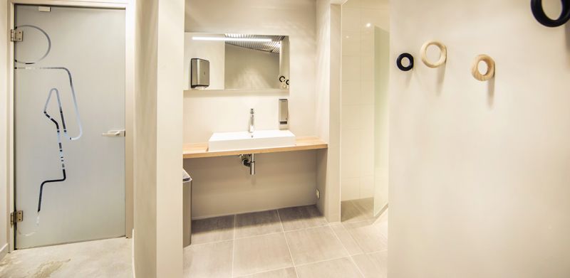 Projectomschrijving | ontwerpstudio HEMELSby is gevraagd om voor OTRAVO een gym en relaxruimte t.b.v. het personeel te ontwerpen en realiseren. OTRAVO heeft als ambitie één van de meest vitale bedrijven van Nederland te worden. De fitnessruimte is geschikt voor groepslessen en individuele trainingsprogramma’s, waardoor het wenselijk was kleed- en doucheruimtes te realiseren. In de doucheruimtes is daarbij gebruik gemaakt van airspots.