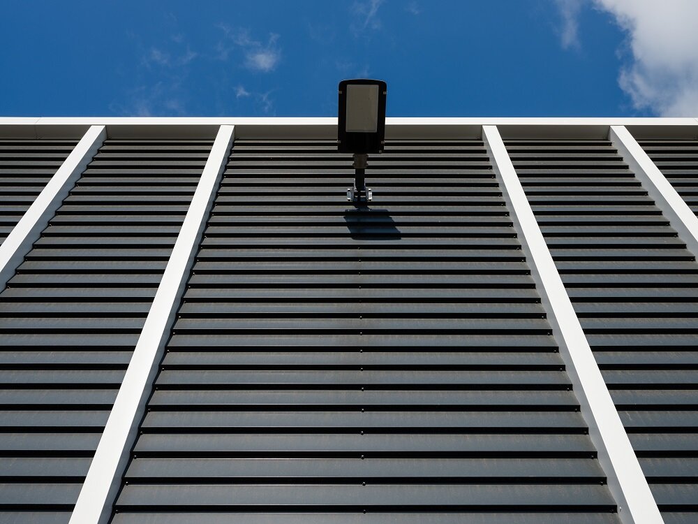 design profiel SAB-potdeksel 22/500in Colorcoat Prisma® in de kleur Black Grey (RAL 7021). Door de combinatie met witte metalen kaders rond de ramen en als daklijst is een strak ontwerp ontstaan. In totaliteit is er 1.825 m2 potdekselprofiel (of ook wel rabat profiel) toegepast. Vakkundig gemonteerd door Emon Dak- en Geveltechniek uit Wijk en Aalburg