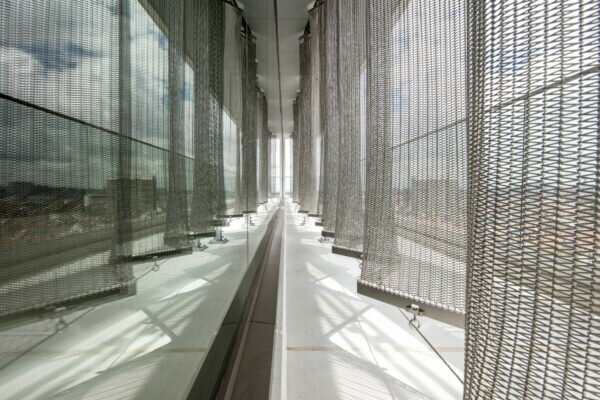 In de Europese wijk van Brussel staat het project Quartz. De architect had een bepaald beeld voor ogen, dat allesbehalve standaard was en ook niet eerder op deze manier was uitgevoerd. De RVS-gaasgordijnen dienen als zonwering en het golvend patroon is mede bepalend voor het beeld.