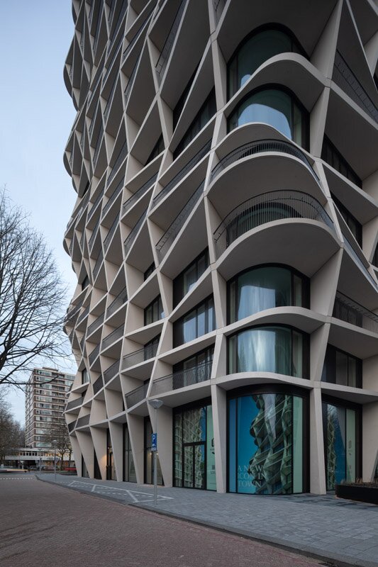 De twee woongebouwen, Quartz en Cube, tellen in totaal 248 woningen en commerciële ruimten in de plint. Naar ontwerp van Studio Gang uit Chicago en co-architect Rijnboutt te Amsterdam bestaat het duurzame complex uit een 75 meter hoge woontoren ‘Quartz’ en de zuidelijk gelegen low-rise ‘Qube’ van 35 meter hoog rondom een plaza. De Schüco kozijnen kenmerken zich door lage drempels naar de balkons. De naar buiten draaiende deuren van Schüco zijn voorzien van een dubbele aanslag- en middendichting.