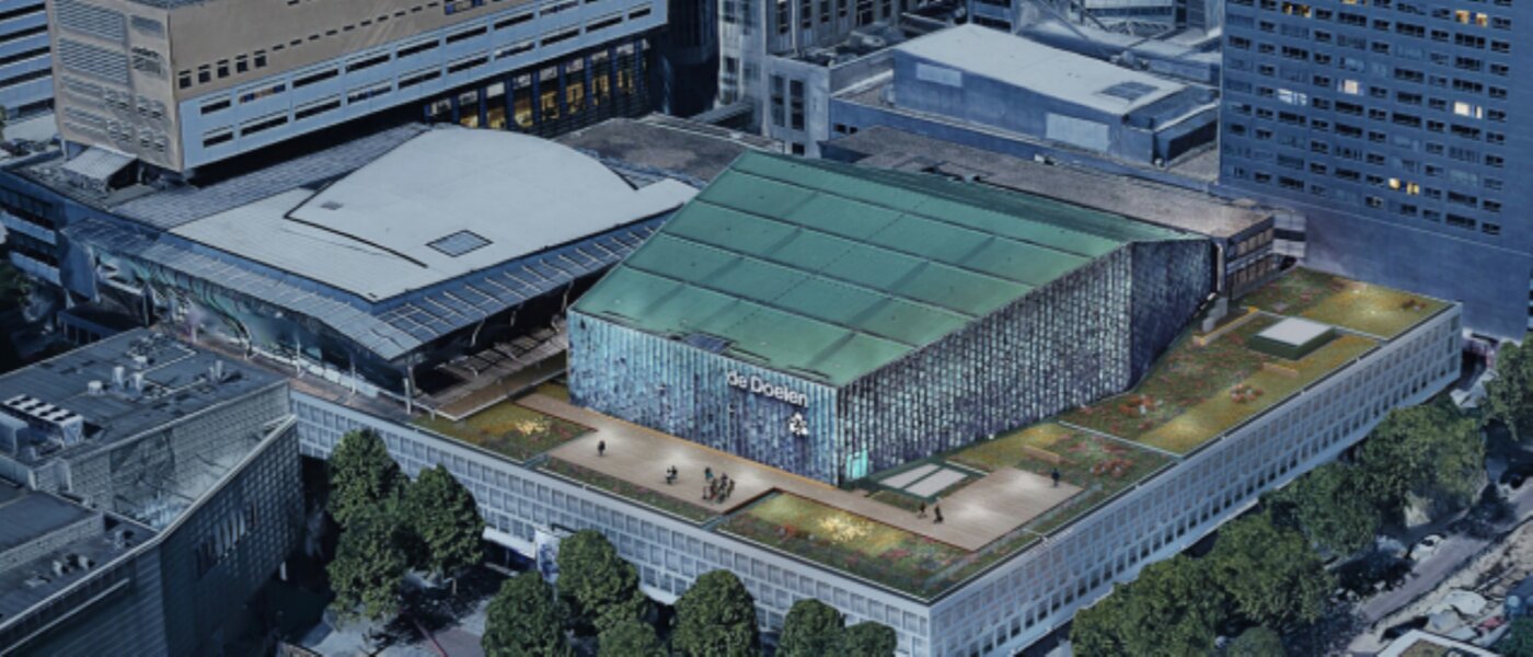 Groendak op een rijksmonument? Ook dat kan!Op het dak van congres- en concertgebouw de doelen vind je sinds 2022 het grootste multifunctionele dak op een gemeentelijkerijksmonument.