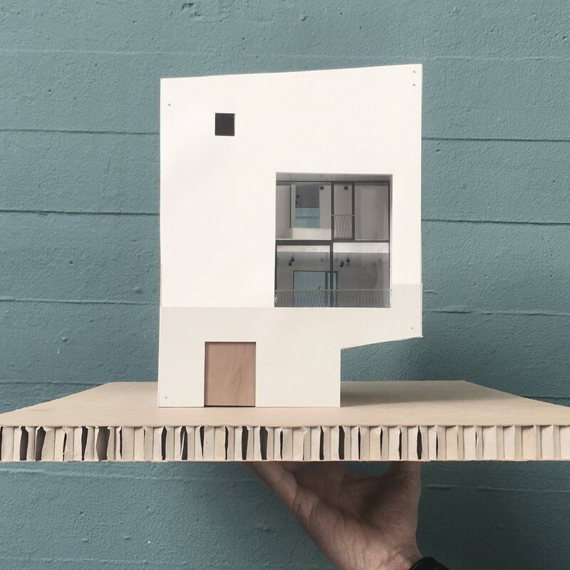Het woningvolume wordt gevormd door een aantal stedenbouwkundige restricties en de aanwezigheid van de boom op het perceel. Als sluitstuk is het huis als een oversculpturaal object in de rij ingevoegd. En daarbij vormt de massa een contrapunt met de naastgelegen modernistische Polvertoren. In toon, textuur en schaal zijn ze familie en toch ook weer niet. Het blijven beide incidenten. Persoonlijke gestes die bij een incrementele stad horen.