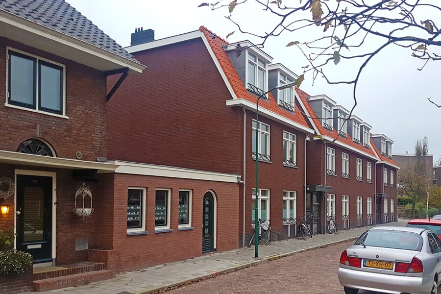 Uitgangspunt voor de nieuwbouw was dat deze het gevarieerde, kleinschalige karakter van de bestaande bebouwing doorzet. Parceling, variatie in het gevelbeeld en variatie in bouwhoogte zijn de middelen die daarbij zijn ingezet. Het bouwblok is om die reden uitgewerkt als een optelsom van afzonderlijke panden die elk afgestemd zijn op de maat en schaal van de omgeving. De hoogteopbouw past bij die in de omgeving; overwegend twee lagen met een kap.