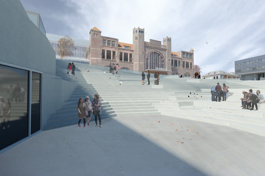 Het ontwerp voor het stationsplein van Haarlem is niet los te zien van het ook door ons ontworpen ondergrondse theater wat er onder ligt. Dit theater bestrijkt bijna de hele oppervlakte van het plein en heeft interactie met het plein.