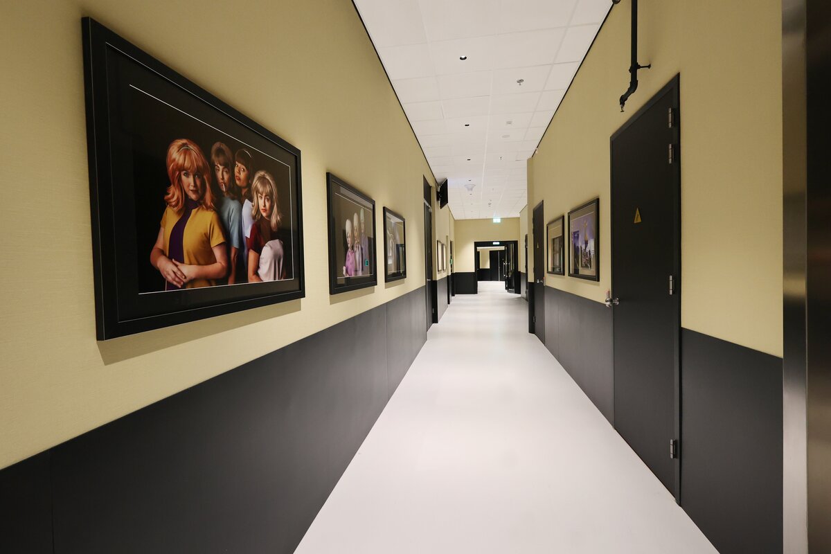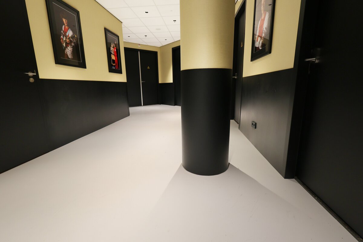 De zwartkleurige Acrovyn® platen vormen een krachtig en elegant contrast met de goudkleurige wandafwerking. Dit samenspel van kleuren versterkt de luxe en theatrale sfeer die zo kenmerkend is voor het AFAS Theater. De strakke afwerking en matte uitstraling zorgen voor rust en een hoogwaardige uitstraling, zonder afbreuk te doen aan de robuustheid die backstage noodzakelijk is.