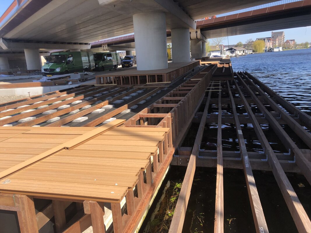 Het project "Wereld onder de brug van de RijnlandRoute N206 Ir. G. Tjalmaweg" te Valkenburg is voorzien van Envirodeck houtcomposiet. Onze fraaie en robuuste Mega deck plankprofielen zijn gebruikt voor de steigers, vlonders en zitelementen waarmee een prettige verblijfsplek onder de bruggen is gecreëerd. Deze profielen verkleuren niet, kunnen een overspanning van 800 mm aan en zijn na hun lange theoretische levemsduur volledig recyclebaar. Bezoek de Mega Deck productpagina of bekijk onze andere Envirodeck composiet profielen.