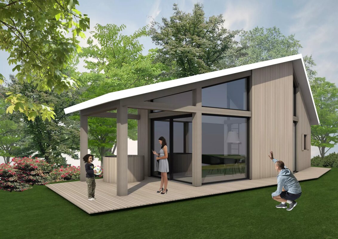 Het tuinhuis is zodanig ingedeeld dat dit mogelijk ook als tijdelijke aanleunwoning gebruikt kan gaan worden. Het ontwerp voor het tuinhuis is geïnspireerd op het beeld van een boerenschuur. met een massief houten draagconstructie, houten gevelbekleding en een eenvoudig zadeldak dat aan één zijde een flink overstek heeft. Grote glasvlakken zorgen verder voor veel licht in het interieur en een goede verbinding met de tuin.