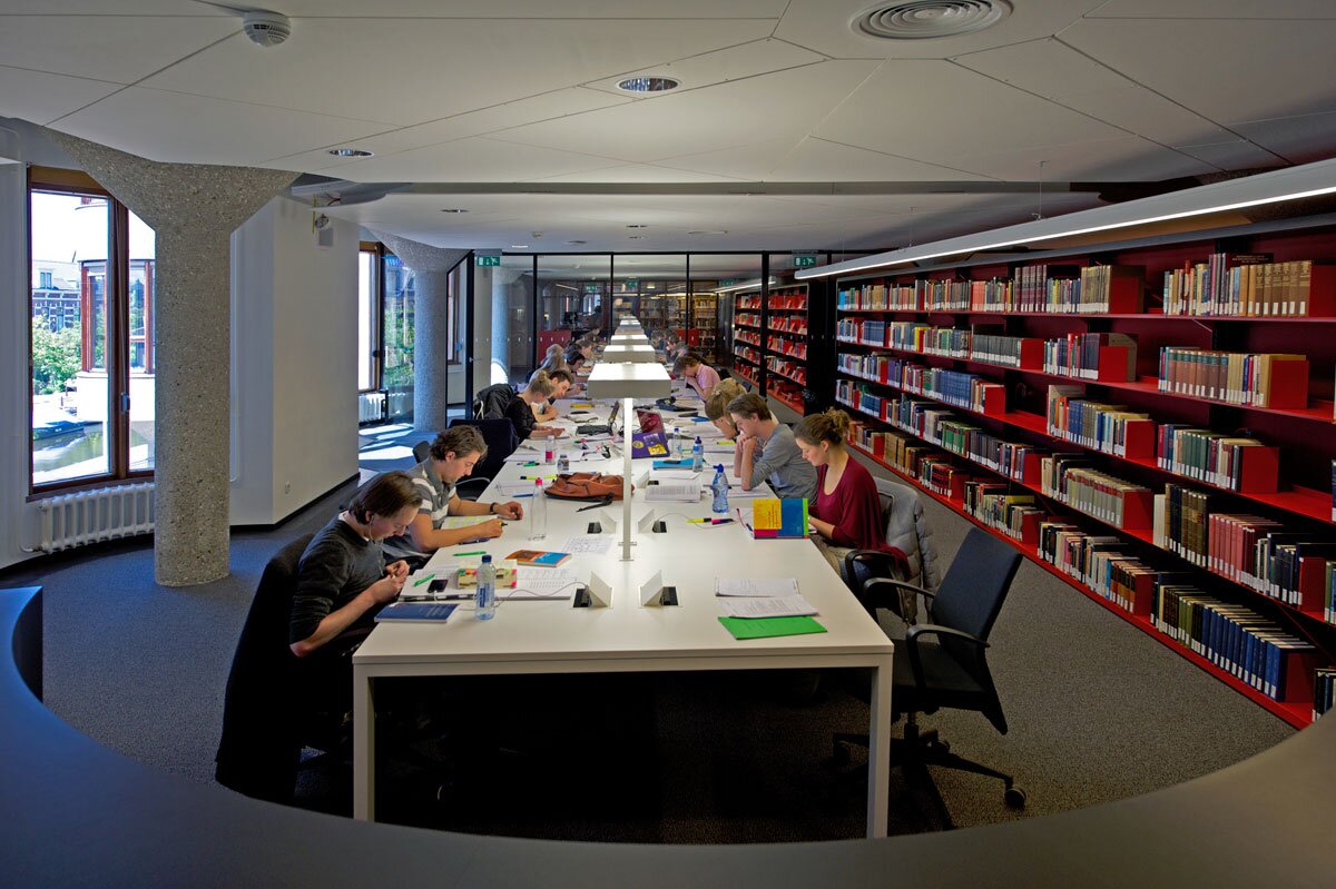 Hiervoor is het aantal werkplekken bijna verdubbeld, zijn samenwerkruimten toegevoegd, een centrum voor onderzoekers, studiekabinetten en uitgebreide toiletgroepen. Hiervoor is de opstelling van de boekencollectie om de atria heen als een decor geplaatst.