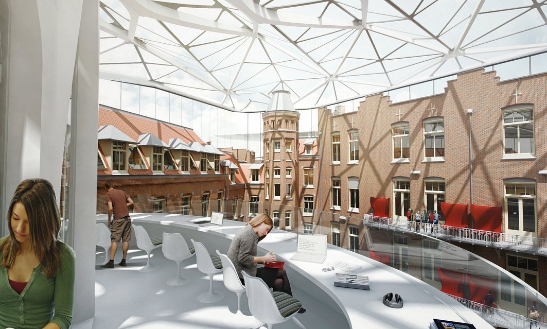 De Universiteit van Amsterdam ontwikkelt open binnenstedelijke campussen op en rond het Roeterseiland en op het Amsterdam Science Park om de academische gemeenschap te versterken en meer samenwerking te stimuleren. Op de locatie Binnengasthuisterrein wordt een binnenstedelijke campus gerealiseerd voor de faculteit Geesteswetenschappen. De Universiteitsbibliotheek (UB) wordt een integraal onderdeel van deze campus en wordt een centrale ontmoetingsplaats voor de studenten van de faculteit. De nieuwe bibliotheek komt in de voormalige tweede chirurgische kliniek en de verpleegsterswoning.