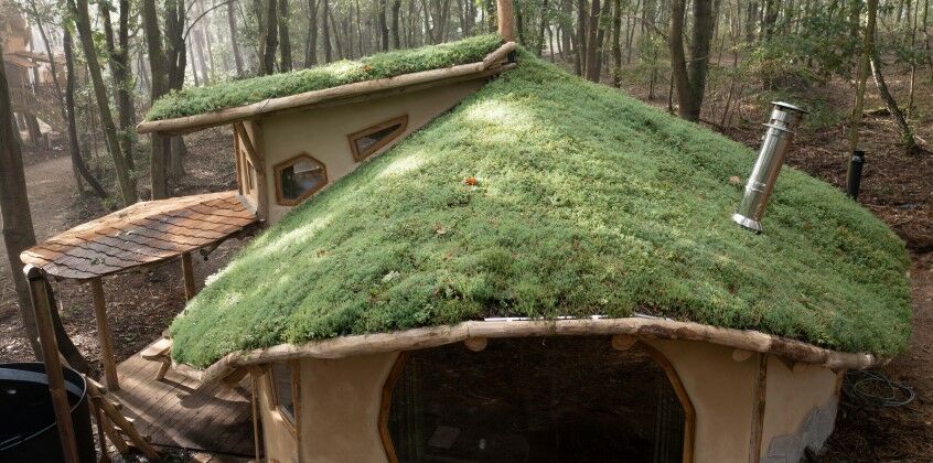 huisje, geïnspireerd door Tolkien's 'The Hobbit', is gemaakt van de natuurlijke grondstof leem en wordt gecomplementeerd met een in het oog springend Sempergreen groendak. Het weelderige groen op het dak versterkt de sprookjesachtige bouwstijl en geeft een prettige sfeer aan de cabin, waardoor je als bezoeker nog net iets langer wilt blijven.