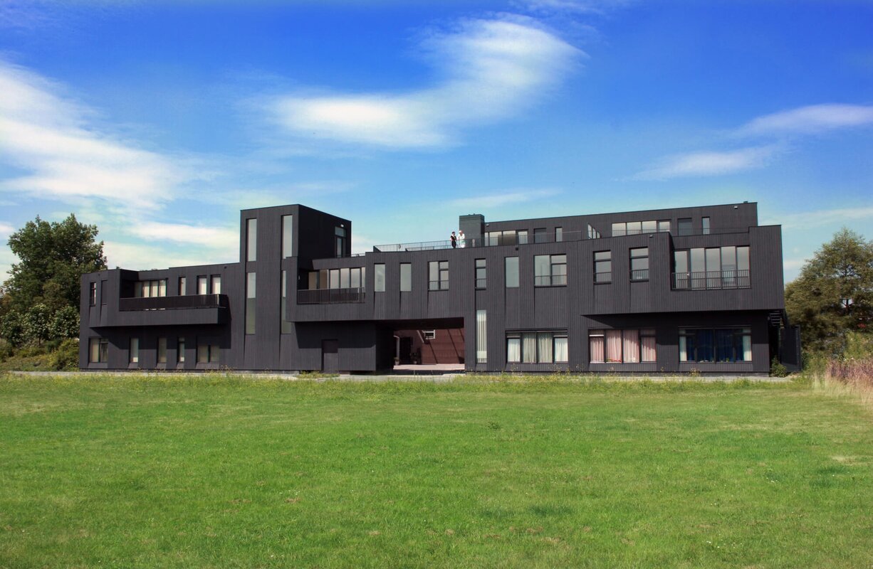 Veldhuizen de Meern is onderdeel van de Vinexwijk Leidsche Rijn, een wijk met veel nieuwbouw en hier en daar boerderijen en tuinderswoningen. Naast de oude bestaande boerderij – waarin braZZerie Abrona – is een moderne schuur ontworpen. Hierin bevinden zich de zorgwoningen, een zorgcomplex en huurwoningen met bestemming begeleid wonen voor (gehandicapte)jongeren die o.a. in de BraZZerie werkzaam zijn. Een bijzonder gebouw voor bijzondere bewoners. Tijdens het bouwproces waren er diverse functionele wijzigingen. Het ontwerp bleek zo flexibel, dat wijzigingen zonder veel problemen konden worden doorgevoerd. Een monolithisch spel van materiaal en detail.