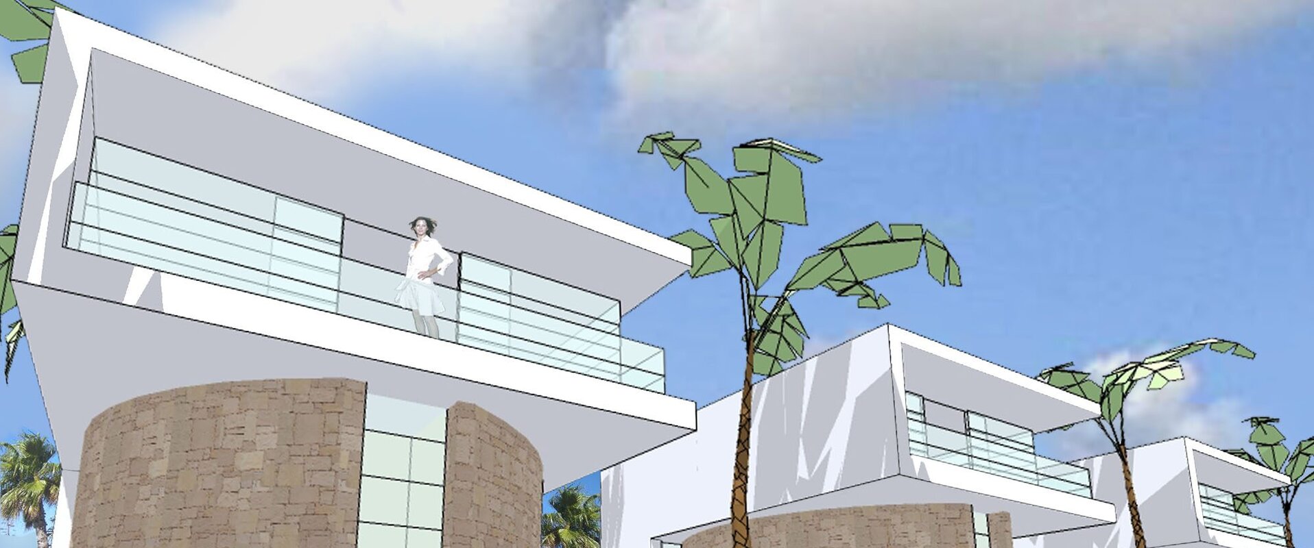 Voor een kleine particuliere opdrachtgever/ontwikkelaar ontwerpen wij 3 villa's op een terrein dat door de ligging met name vanaf de verdiepingen uitzicht op 'het einde van Europa en zee biedt.