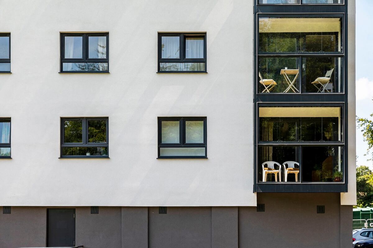 The upper part of the balcony system consists of sliding and folding glass whilst the lower part consists of slender powder-coated aluminum profiles. There is a wide choice of materials for the elements.
