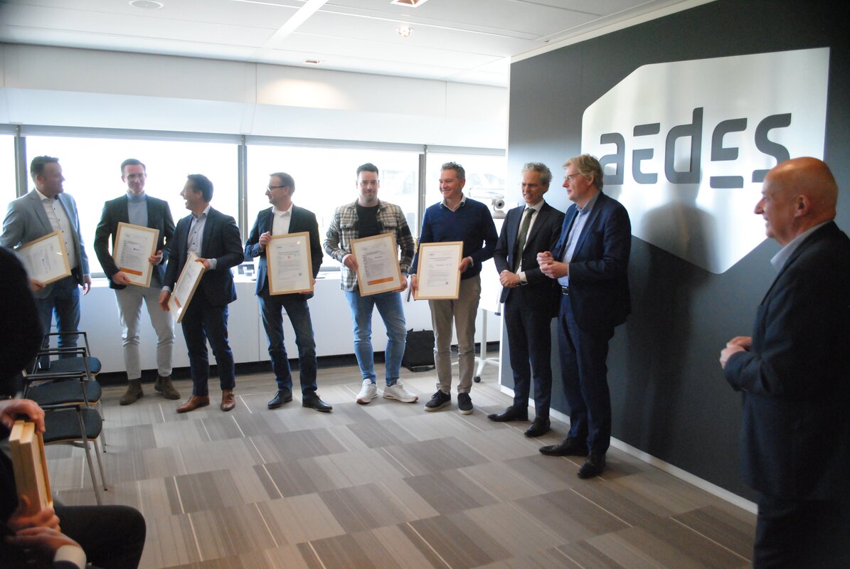 Zes fabrikanten van modulaire kant-en-klare woningen kregen afgelopen week het eerste KOMO-certificaat voor een complete woning. Het is voor het eerst dat een typegoedkeuring is toegekend in Nederland. Martin van Rijn (voorzitter van Aedes) en Jacos van Zelst (programmadirecteur Versnelling tijdelijke huisvesting bij het ministerie van Binnenlandse Zaken en Koninkrijksrelaties - BZK) reikten deze typegoedkeuring uit tijdens een feestelijke happening bij Aedes in Den Haag.