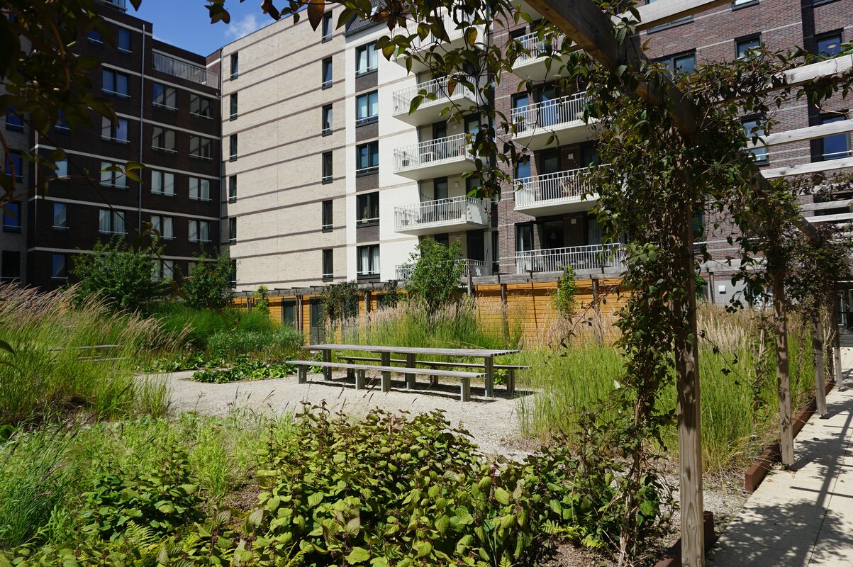 Het eindresultaat van de Zijdebalen mag er zijn. Niet zestig, maar slechts een jaar later is de daktuin van de Zijdebalen in volle glorie te bewonderen door haar bezoekers en genieten bewoners van deze groene binnenplaats middenin de stad.