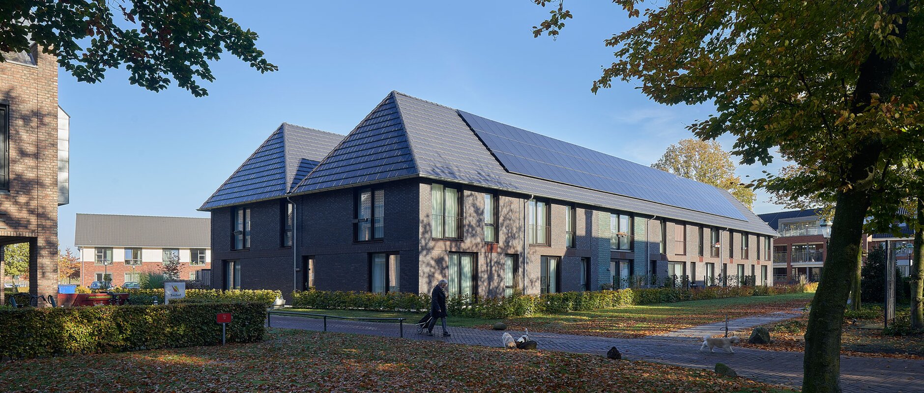 En hoe kunnen we die vormgeven zodat verschillende gebruikers (met wisselende wensen) er met plezier wonen? En medewerkers op een efficiënte manier zorg kunnen verlenen? In antwoord op deze vragen ontwikkelden we voor Aveleijn een flexibel woon-zorgconcept. Afhankelijk van de zorgbehoefte kunnen de modulaire bouwstenen van ongeveer 50 m2 verschillende functies hebben. Zo kan elk toekomstig gebouw levens-loopbestendig en duurzaam ingericht worden. De Wiekhof in Tubbergen is de eerste nieuwbouw van Aveleijn die is gerealiseerd conform dit woonconcept en biedt een thuis aan 24 oudere volwassenen met een verstandelijke beperking.