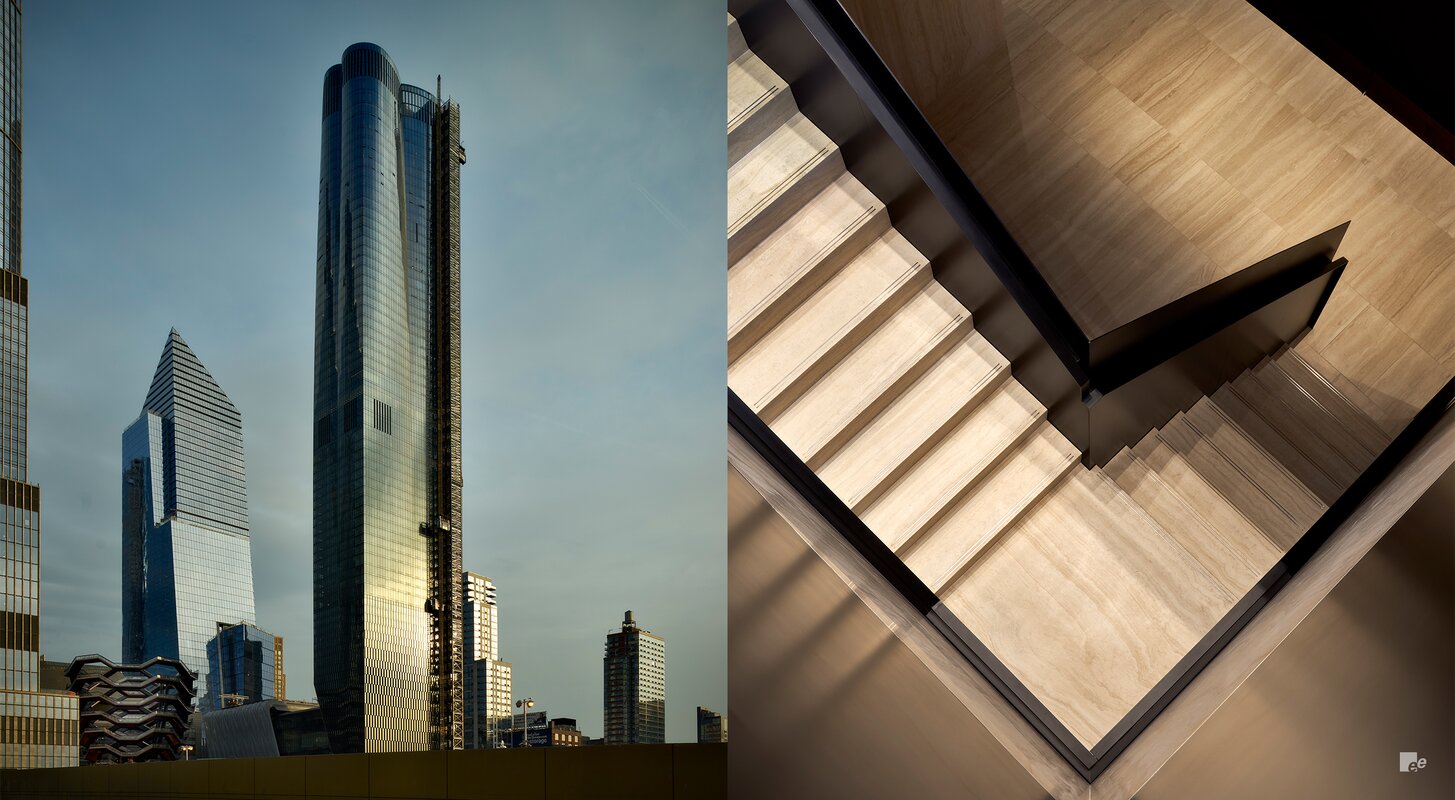 Deze trap komt uit de lobby van de 15 Hudson Yards Tower in New York, ontworpen door de beroemde Amerikaanse architecten Diller Scofidio + Renfro.