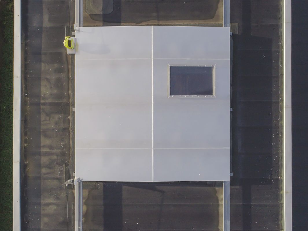 Blommaert werd daarom gevraagd om 2 openschuivende luiken van 5 x 5 meter te voorzien op de vaste dakconstructie. Elk schuifluik is tevens voorzien van een lichtkoepel om voldoende lichtinval in de loods te voorzien. De luiken worden elektrisch aangedreven en vanuit de loods bediend.
