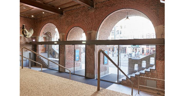 Sinds de oorspronkelijke montage zijn de gebruiks- en veiligheidsvoorschriften van het gebouw aanzienlijk veranderd. Zo ook bij de renovatie van de entree en de openbare ruimtes, uitgevoerd door BiermanHenket architecten en gevelbouwer MHB in 2016. Om te blijven voldoen aan de wettelijke vereisten, zonder afbreuk te doen aan de esthetiek van het gebouw, heeft de Beurs van Berlage gekozen voor GEZE Slimdrive SL NT automatische schuifdeuren.