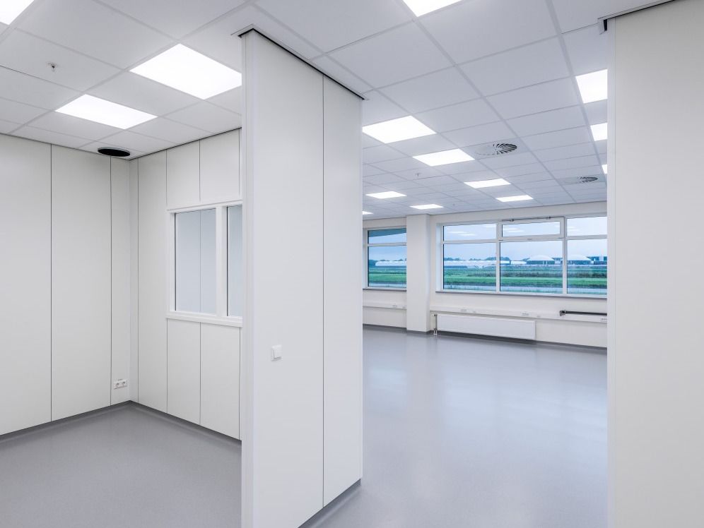 Net als tijdens de voorgaande verbouwing koos de architect ook dit maal voor wanden van Faay. De HW90 om precies te zijn. Een wand met twee panelen met een kern van vlasscheven met daartussen een spouw van 40 mm gevuld met steenwol en afgewerkt met een hardplastic toplaag. Door de hardplastic toplaag zijn de wanden eenvoudig te reinigen. Hygiëne en het waarborgen van kwaliteit zijn bij BeJo namelijk van groot belang. De wand levert bovendien een positieve bijdrage aan de esthetiek en is zeer snel te monteren. De Mossel Projectafbouw BV was, in opdracht van hoofdaannemer De Geus Bouw B.V., verantwoordelijk voor de montage van de wanden.