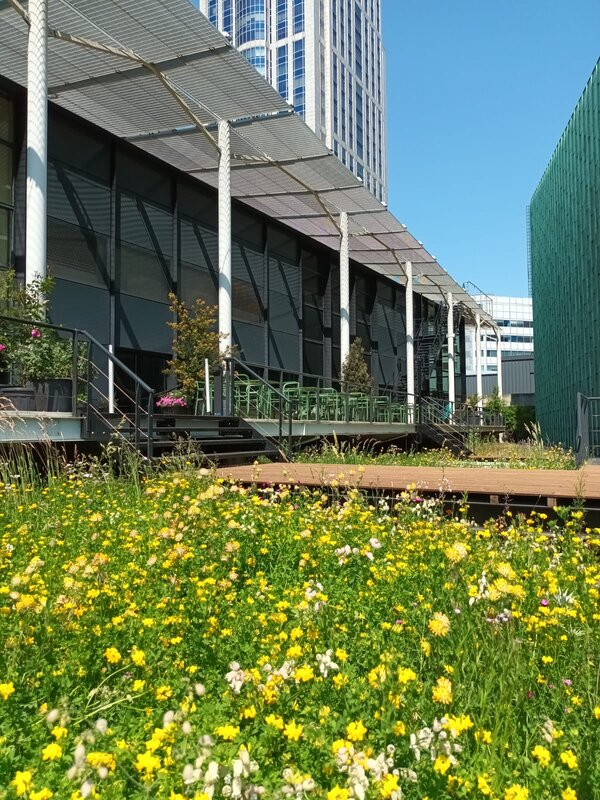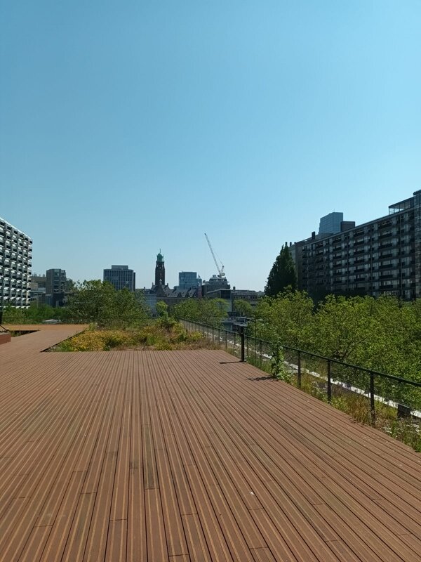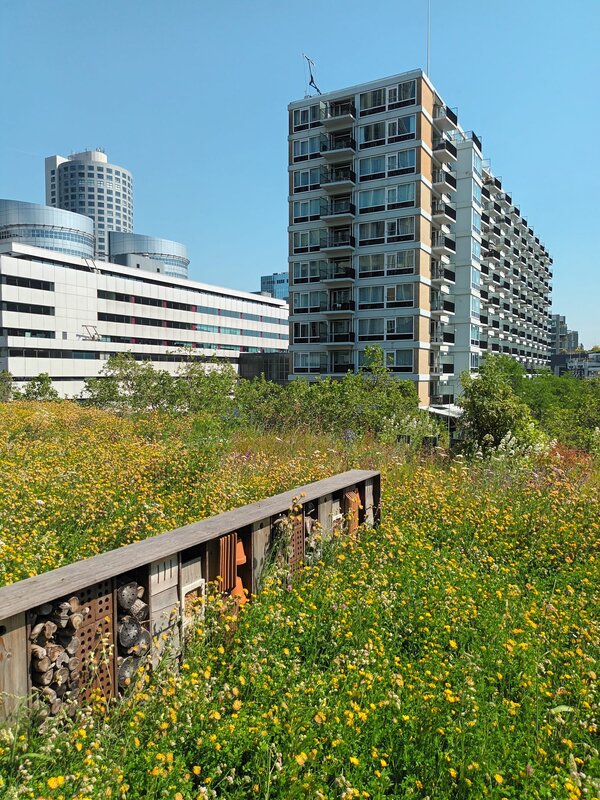 Dit jaar zie je voor het eerst hoe mooi het is geworden. Naast een prachtige, biodiverse daktuin biedt het dak ruimte aan 2000 badkuipen water en daar bovenop ruimte voor sociale activiteiten.