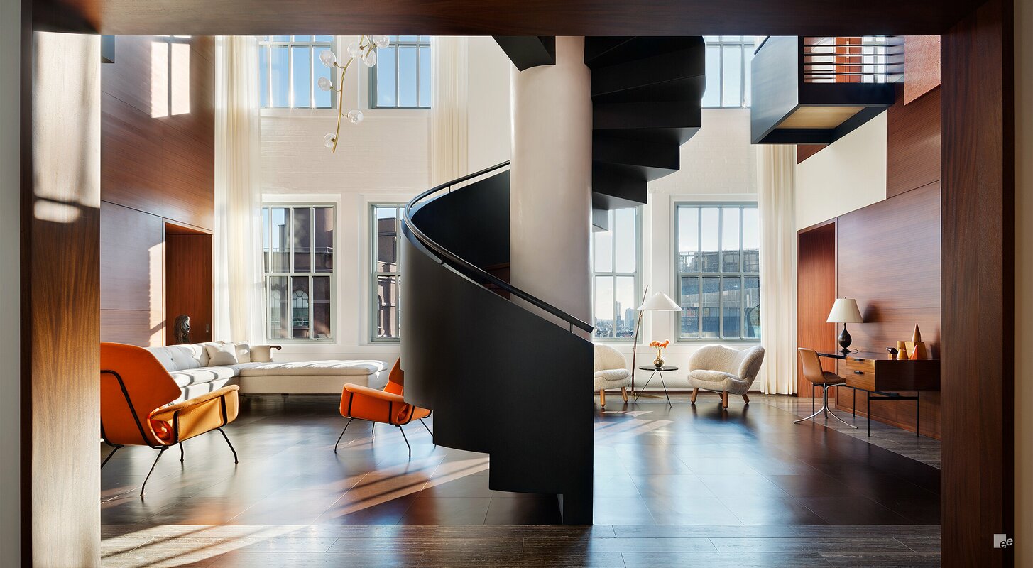 Voor een stijlvol appartement in Greenwich, een wijk op het eiland Manhattan in New York, was een uitnodigende trap nodig. De trap moest gerealiseerd worden rondom een steunpilaar, prominent aanwezig in het interieur.