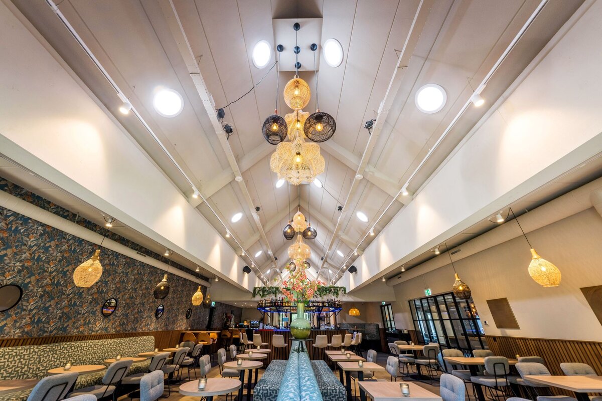 Techcomlight bood een ander pad. Hun daglichtbuizen, voorzien van een speciale coating, brengen het volle daglicht via reflecterende tubes naar binnen. Het resultaat is diffuus, natuurlijk licht dat zich gelijkmatig verspreidt. Geen schittering of oververhitting, maar een zachte lichtinval die zich moeiteloos mengt met de sfeerverlichting. Gasten ervaren daardoor een warme ambiance, terwijl het personeel profiteert van gezonde en prettige werkomstandigheden.