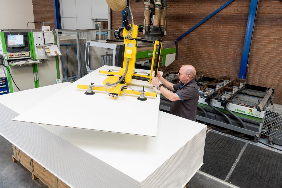 ‘We hebben een bijzondere positie ten opzichte van anderen. Wij bedrukken onze wanden namelijk zelf. En dan maakt het niet uit voor welk materiaal men kiest, wij zorgen voor het gewenste beeld op glas en hout en even gemakkelijk op staal. En zit er een deur in de wand? Dan bedrukken we die ook mee. De trend met veel glas is al zo’n decennium gaande. Maar eigenlijk is er niets aan, het is alsof je in een aquarium aan het werk bent. Bedruk je de glaswand echter met een leuke print, dan krijg je een heel ander effect. En ben je na verloop van tijd toe aan iets nieuws? Dat is zó geregeld, zeker omdat we de faciliteiten in eigen huis hebben.’