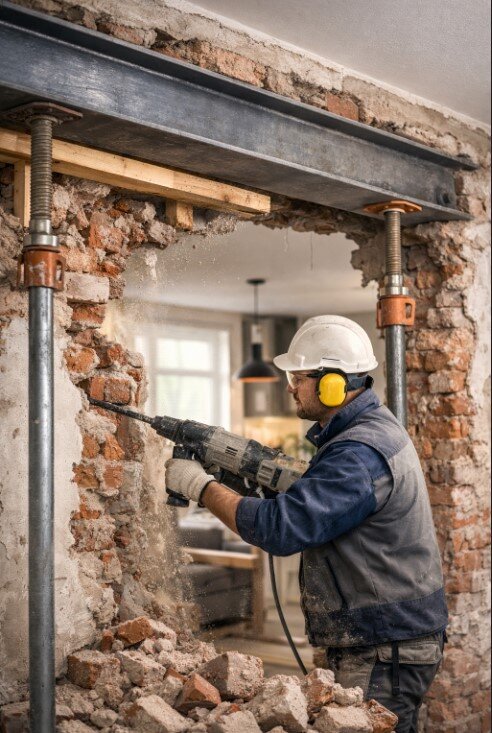 Veel huiseigenaren kiezen ervoor om een dragende muur te verwijderen om een open leefruimte te creëren. Denk aan een grotere woonkamer, een open keuken of meer lichtinval. Met de juiste constructieve oplossing, zoals een stalen balk, blijft de woning veilig én ontstaat er meer ruimtelijkheid.