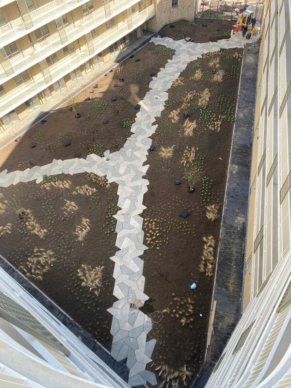 Met een oppervlakte van 1390 m² bevat de tuin meer dan 16.000 planten, waaronder siergrassen, vaste planten en meerstammige heesters. De tuin is glooiend aangelegd en voorzien van een dikke substraatlaag van 300 tot 700 mm, zodat de planten voldoende wortelruimte hebben. En dit allemaal op het dak van de parkeergarage!