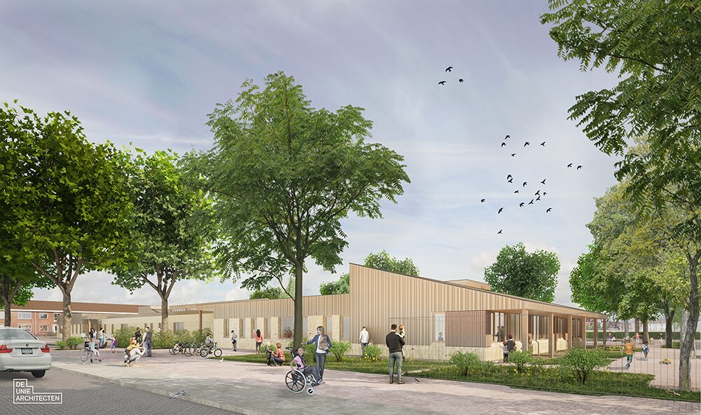 Aan de Plataanstraat in Leeuwarden openen zorginstelling Alliade en SO Fryslân deze zomer een nieuw en duurzaam centrum voor kinderen en jongeren die extra ondersteuning nodig hebben. De nieuwbouw brengt Kinderdagcentrum De Vlieger en basisschool voor speciaal onderwijs SO It Twalûk samen onder één dak. Het gebouw is tot in detail afgestemd op de verschillende functies en gebruikers, met veel aandacht voor comfort, veiligheid en beleving.