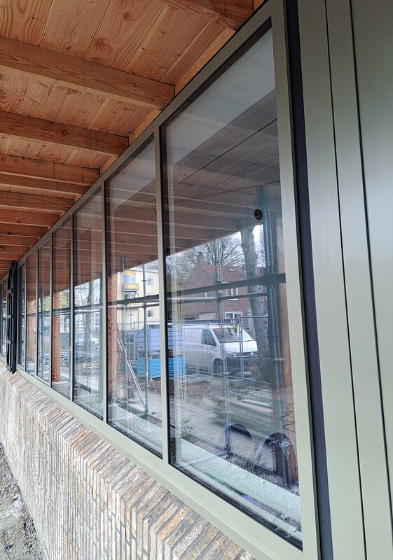 In totaal werd in Leeuwarden circa 500 m² aan Max Light Modern ramen toegepast, in combinatie met HR++ beglazing. Op vraag van de architect is gekozen voor bicolor kozijnen. De binnenzijde is afgewerkt in RAL9002 M, een matte grijswitte tint met een glansgraad van 30 procent. Aan de buitenzijde zorgt RAL7002 M, een olijfgrijze kleur, voor een rustige en natuurlijke inpassing in de omgeving.
