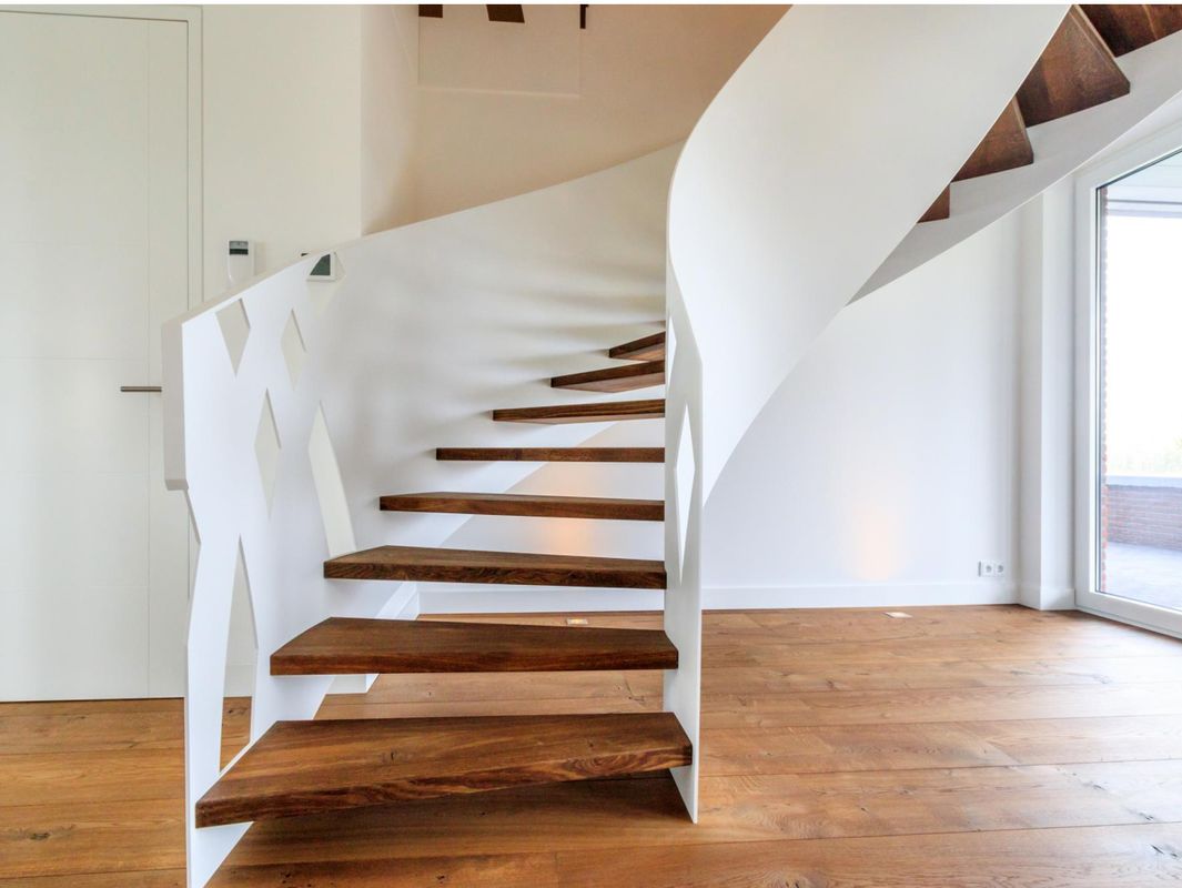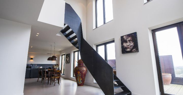 ‘We zijn gespecialiseerd in het ontwerpen en maken van bijzondere trappen. Stalen trappen, zwevende trappen, wenteltrappen, wat jij wilt dat maken wij’, begint Djurre van Bruchem zijn verhaal. ‘Het maken van exclusieve trappen is mij met de paplepel ingegoten. Inmiddels realiseren we ook maatwerk op interieurgebied, denk aan een unieke tafel of aan slimme opbergmogelijkheden in een woning met relatief weinig vierkante meters.’