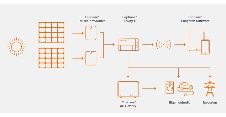 De Enphase Home Energy Solution bestaat uit de volgende onderdelen: