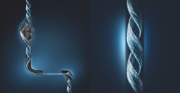 GEBERIT PE BACKFLIP BOCHT - De gedraaide Geberit PE BackFlip bocht zorgt ervoor dat de gelaagde waterstroom vervolgens weer gaat wervelen, waardoor het water met een draaiende beweging in een ringvormige stroming wordt afgevoerd via de verticale leiding. De interne luchtkolom in de navolgende standleiding blijft hierdoor intact.