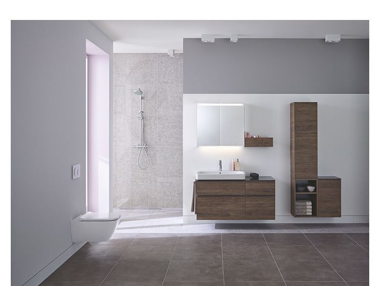 “De licht afgeronde handgrepen zorgen voor een naadloze en harmonieuze overgang van de onderkast naar de wastafel. Ze vormen een perfecte eenheid met de smalle randen van het keramiek. We hebben veel aandacht besteed aan creatieve ontwerpvrijheid met veelzijdige combinatiemogelijkheden," aldus Geberit.